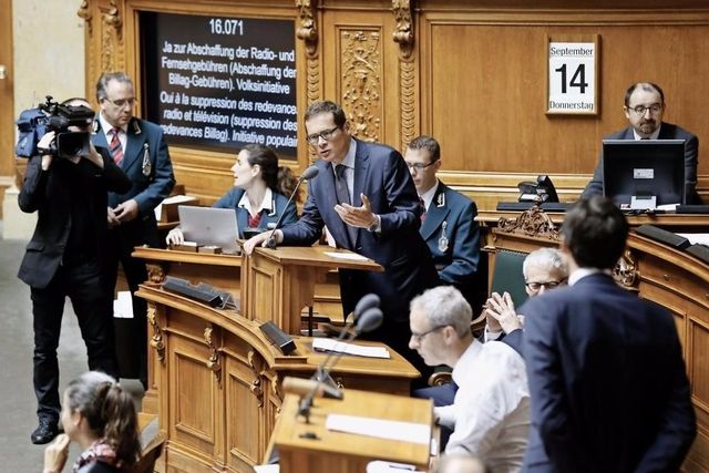Le sujet déclenche les passions des élus: 69 conseillers nationaux sur 200 se sont inscrits pour prendre la parole dans un débat qui est parfois parti en tête-à-queue. Il y a eu près de cinq heures de palabres et on n'en a pas vu le bout. La moitié seulement des inscrits a pu ouvrir la bouche. Pourtant l'issue des discussions ne fait guère de doute. L'initiative sera rejetée et le contre-projet, qui demande une redevance à 200 francs, subira le même sort. En effet seule l'UDC et une minorité du PLR veulent diminuer drastiquement les moyens dévolus à la SSR. Au grand dam d'une large coalition regroupant la gauche, le PDC, la majorité du PLR et les Vert'libéraux. Récit des joutes.
